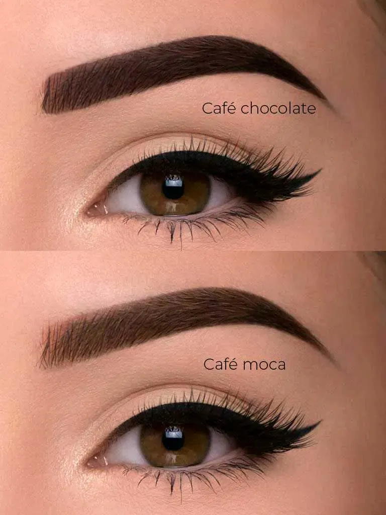 Lápiz efecto tatuaje, ideal para definir tus cejas, +36 horas de larga duración, cepillo de cuatro mandíbulas suaves que gracias a sus puntas simulan el bello de tus cejas. Disponible en 2 tonos Café Moca y Café Chocolate.